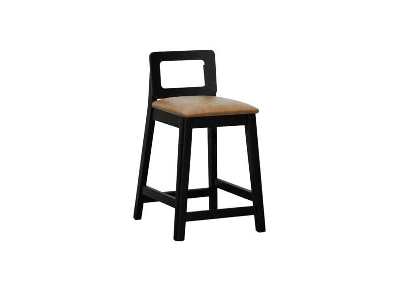 Banqueta Média River Madeira Maciça Assento Estofado Corano Preto/Marrom