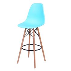 Banqueta Policarbonato Base em Madeira DKR PP OR Design Azul Claro