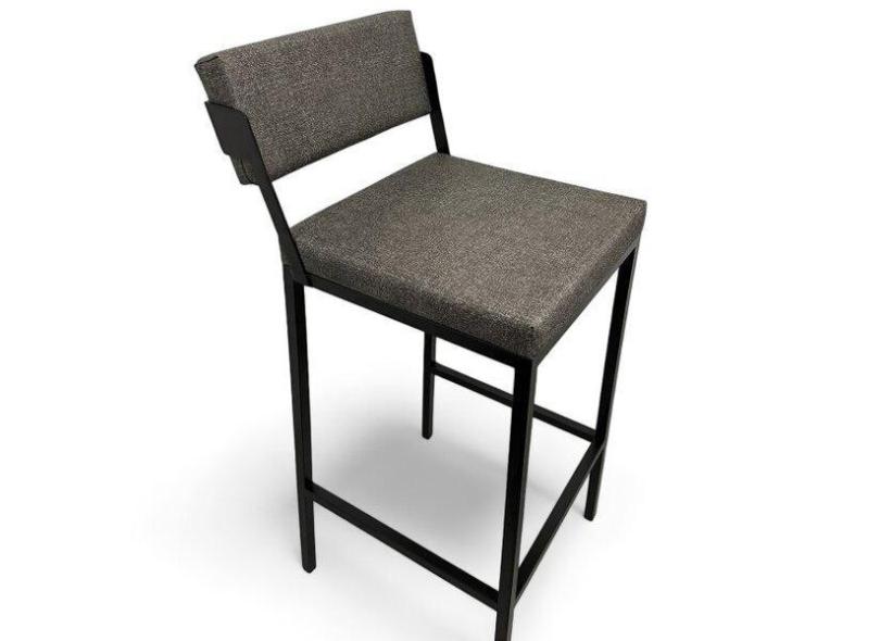 Banqueta Prisma Estofada Com Encosto Cinza Metalon Preto 75cm