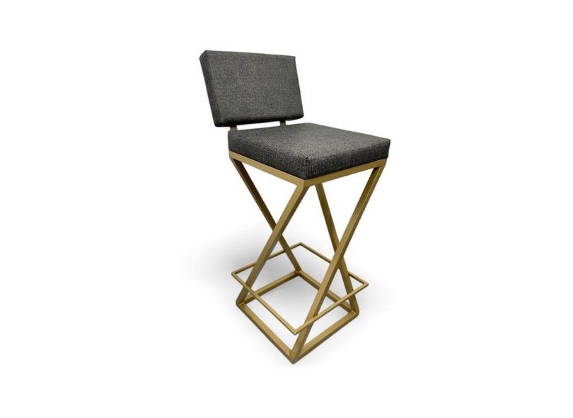 Banqueta Zenite Estofada com Encosto Cinza Metalon Dourado