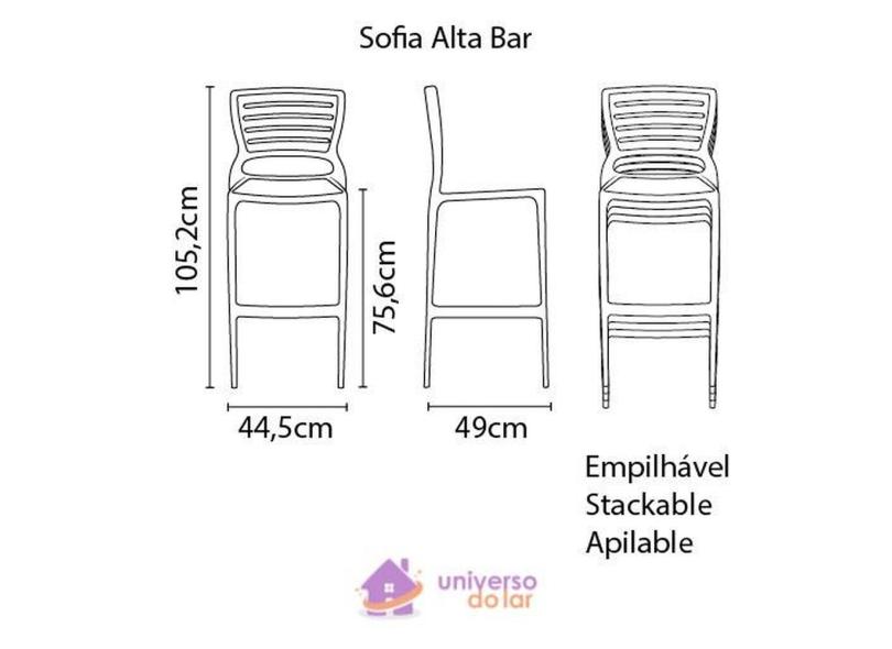 Cadeira Tramontina Sofia Alta Bar em Polipropileno e Fibra de Vidro Camurça Tramontina