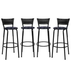 Conjunto 4 Banquetas Altas Estrutura Preta Encosto Junco Preto 70cm It