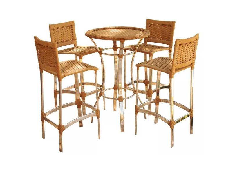 Conjunto De 3 Banquetas E Bistrô Em Alumínio Avelã