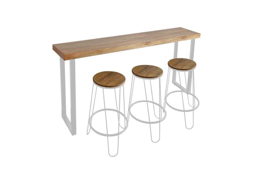 Conjunto Industrial 150cm Guatemala Aparador com 3 Banquetas Industriais Base Ferro Branco
