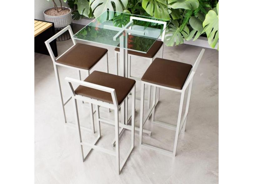 O menor preço encontrado no Brasil para Conjunto Mesa Alta Bar Bistr Quadrada Vidro 4 Banquetas Conf atualmente é R$ 1.199,19.
