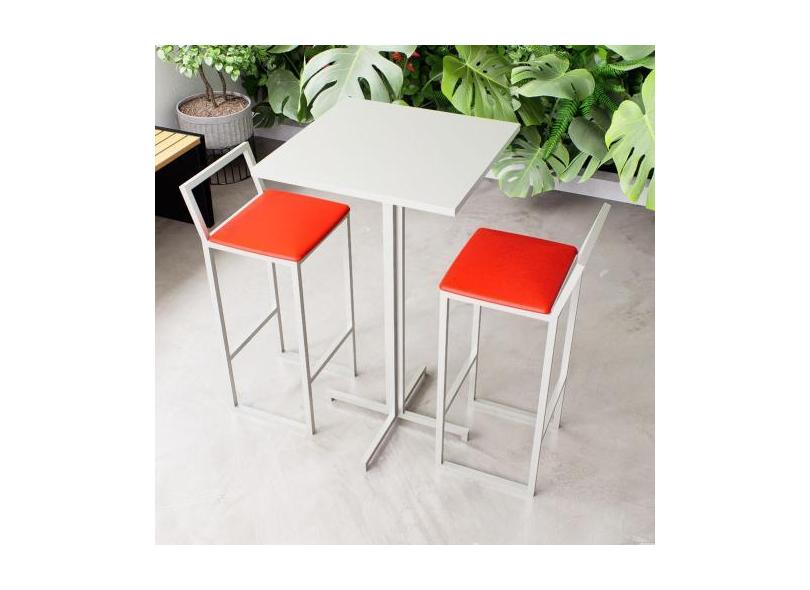 Conjunto Mesa Alta Bar Bistrô Quadrada Branca 2 Banquetas Confort Esto