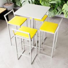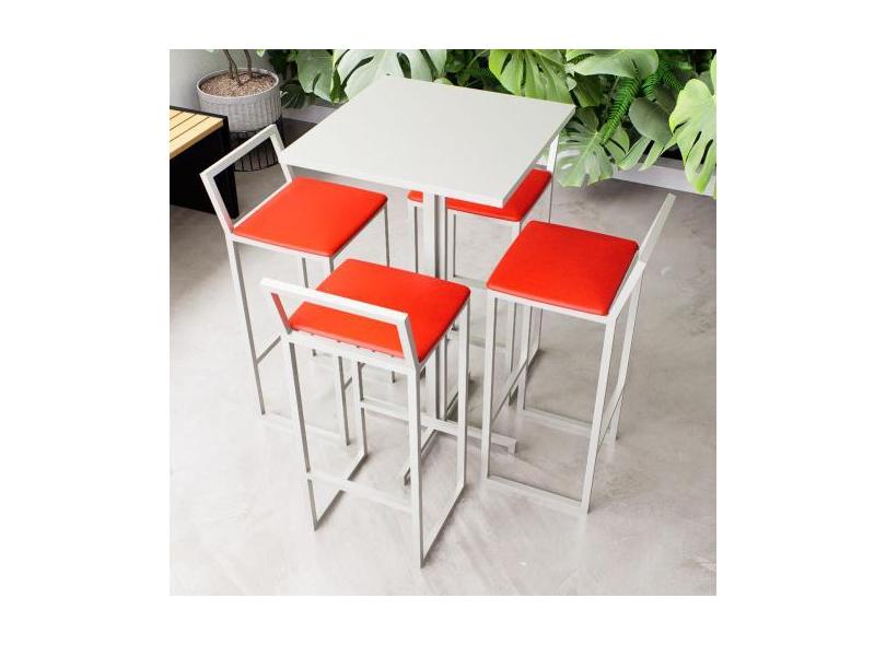 O menor preço encontrado no Brasil para Conjunto Mesa Alta Bar Bistrô Quadrada Branca 4 Banquetas Confort Esto atualmente é R$ 1.134,41.