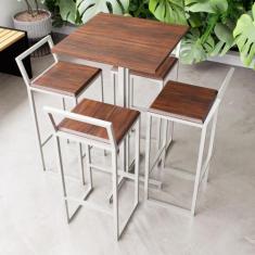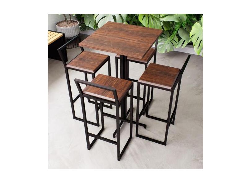 O menor preço encontrado no Brasil para Conjunto Mesa Alta Bar Bistrô Quadrada Imbuia 4 Banquetas Confort Indu atualmente é R$ 1.106,61.