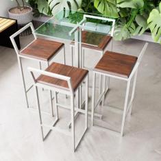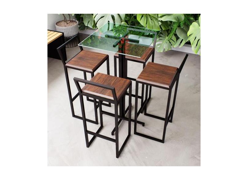 Conjunto Mesa Alta Bar Bistrô Quadrada Vidro 4 Banquetas Confort Imbui