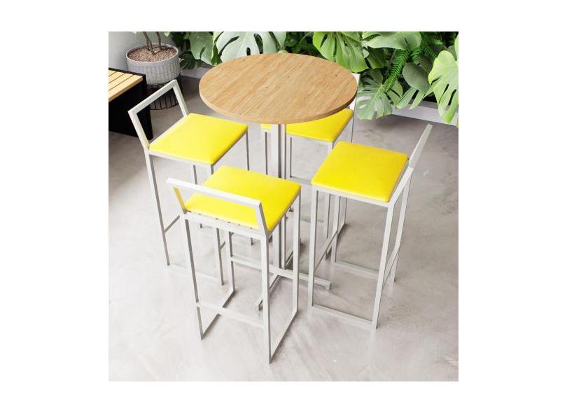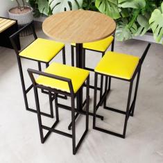 Conjunto Mesa Alta Bar Bistrô Redonda Pinus 4 Banquetas Confort Estofa