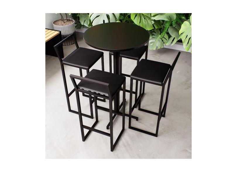 O menor preço encontrado no Brasil para Conjunto Mesa Alta Bar Bistrô Redonda Preta 4 Banquetas Confort Estofa atualmente é R$ 1.134,41.