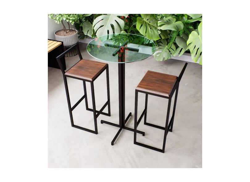 Conjunto Mesa Alta Bar Bistrô Redonda Vidro 4 Banquetas Confort Imbuia