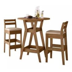 Conjunto Mesa Bistro com 2 Banquetas Cedro Gold Celta Moveis - Celta M