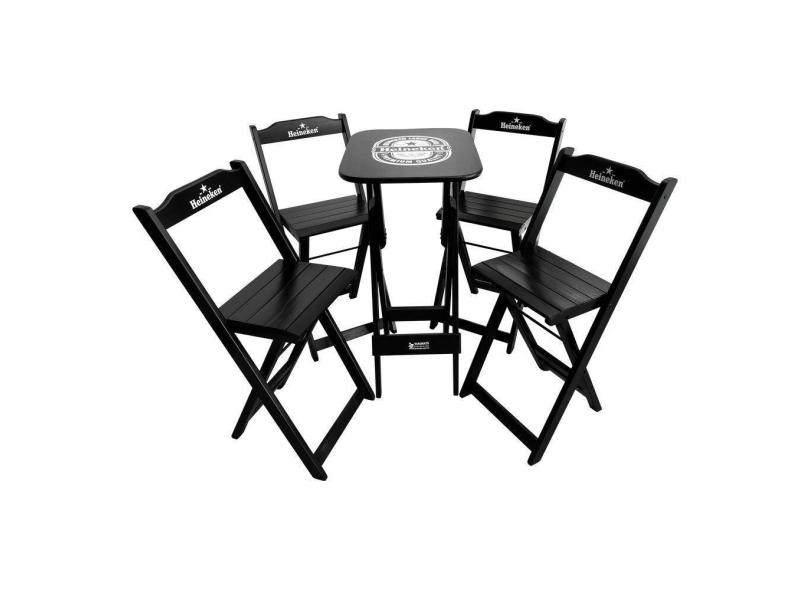 O menor preço encontrado no Brasil para Conjunto Mesa Bistrô Com 4 Banquetas Dobráveis De Madeira Personalizada Hei - Preta - Cor: Preto atualmente é R$ 742,47.