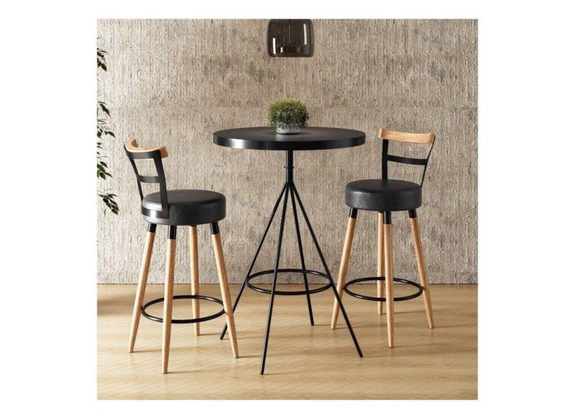 Conjunto Mesa Bistrô e 2 Banquetas Moscou Salaone Preto/Marrom