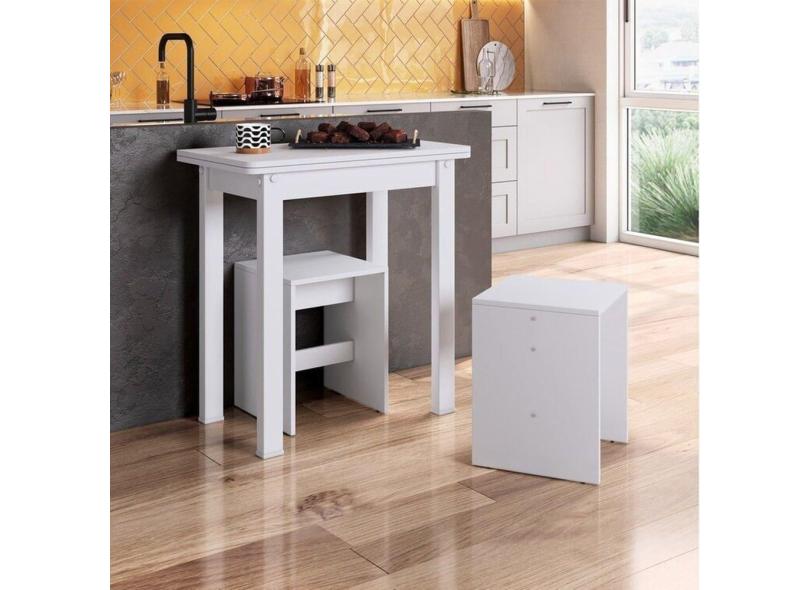 O menor preço encontrado no Brasil para Conjunto Mesa para Sala de Jantar com 2 Banquetas Branco atualmente é R$ 524,13.