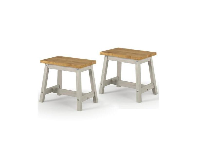 Duas Banquetas de Madeira Maciça com Travessa Cinza Lavado