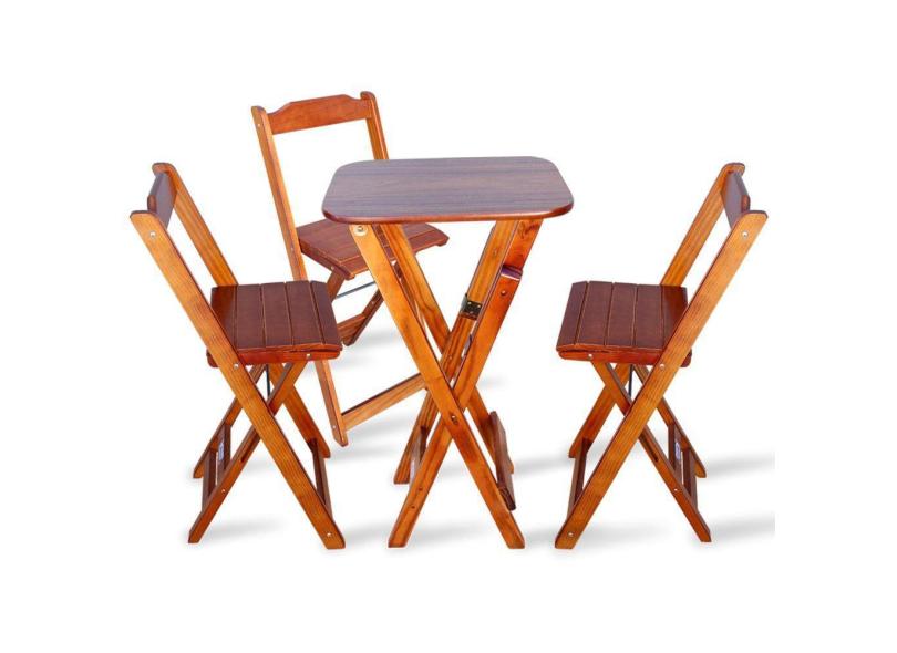 O menor preço encontrado no Brasil para Jogo de Mesa Bistro com 3 Banquetas Dobravel para Bar e Restaurante- Imbuia atualmente é R$ 573,63.
