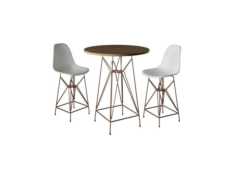 O menor preço encontrado no Brasil para Jogo Mesa Bistrô Eames Tampo Amêndoa 60Cm 2 Banquetas Branca Base Ferro Cobre - Cor: Amendoa atualmente é R$ 962,72.