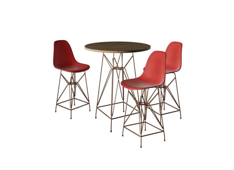 O menor preço encontrado no Brasil para Jogo Mesa Bistrô Eames Tampo Amêndoa 60Cm 3 Banquetas Vermelha Base Ferro Cobre - Cor: Amendoa atualmente é R$ 1.304,16.
