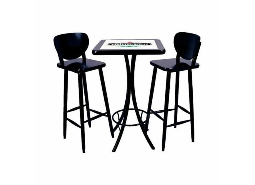 Jogo Mesa Quadrada Bistrô Azulejo Heineken 2 Banqueta- Preto