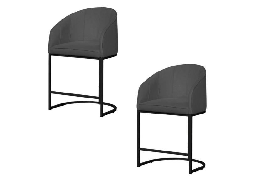 Kit 02 Banco Banqueta Poltrona Mia Base Metal Preta Suede Cinza