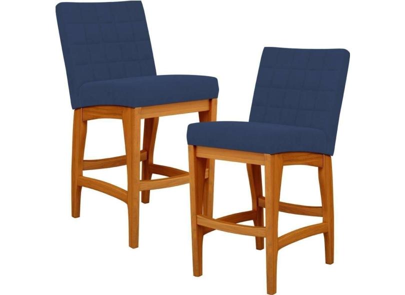 Kit 02 Banqueta Baixa Cozinha Bancada L02 Azul Marinho