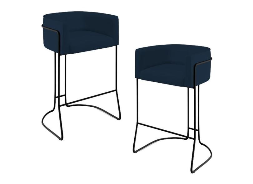 Kit 02 Banquetas Fixa Preto Veludo Azul Oxford C-304