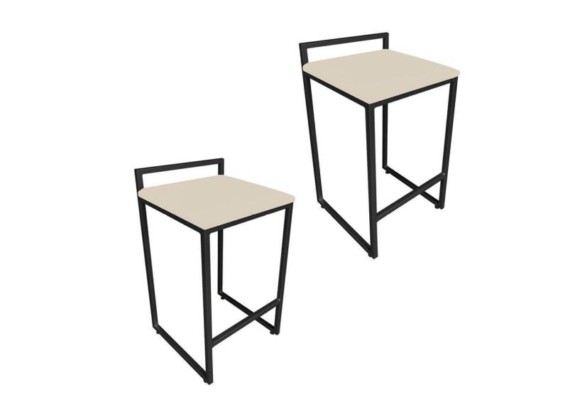 Kit 02 Banquetas Lavínia Suede Base Preto Bege