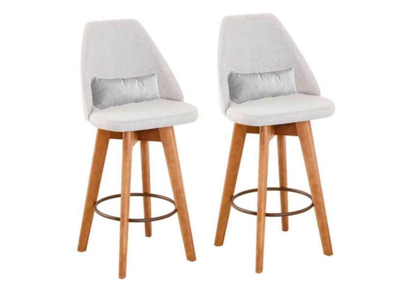 Kit 02 Banquetas Linho Bege E Almofada Branco
