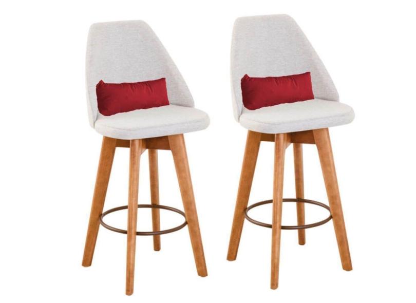 Kit 02 Banquetas Linho Bege E Almofada Sintético Vermelho