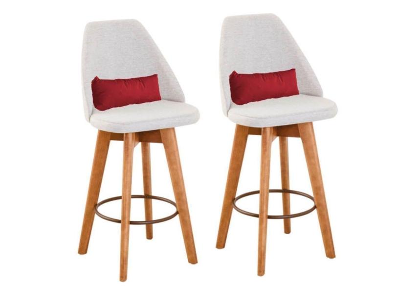 Kit 02 Banquetas Linho Bege E Almofada Suede Vermelho