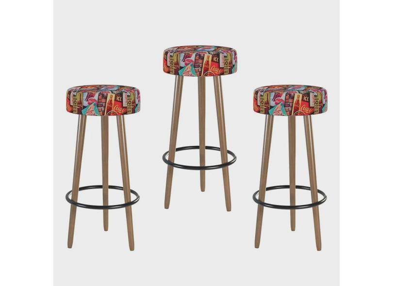 Kit 03 Bancos Banquetas Pés Palito Londres Suede Retrô - Salaone