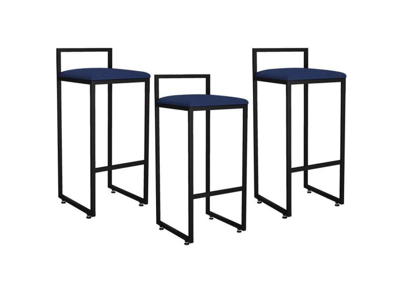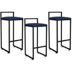 Kit 03 Banquetas Altas Hanna Preto Suede Azul Marinho