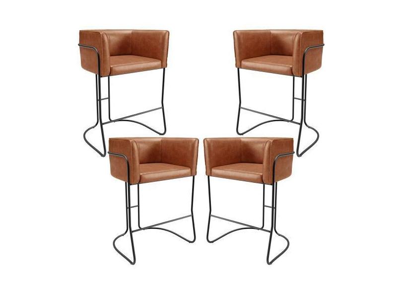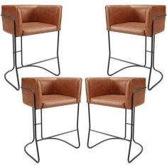 Kit 04 Banquetas Baixa Base de Aço Preto Betina D02 material sintético