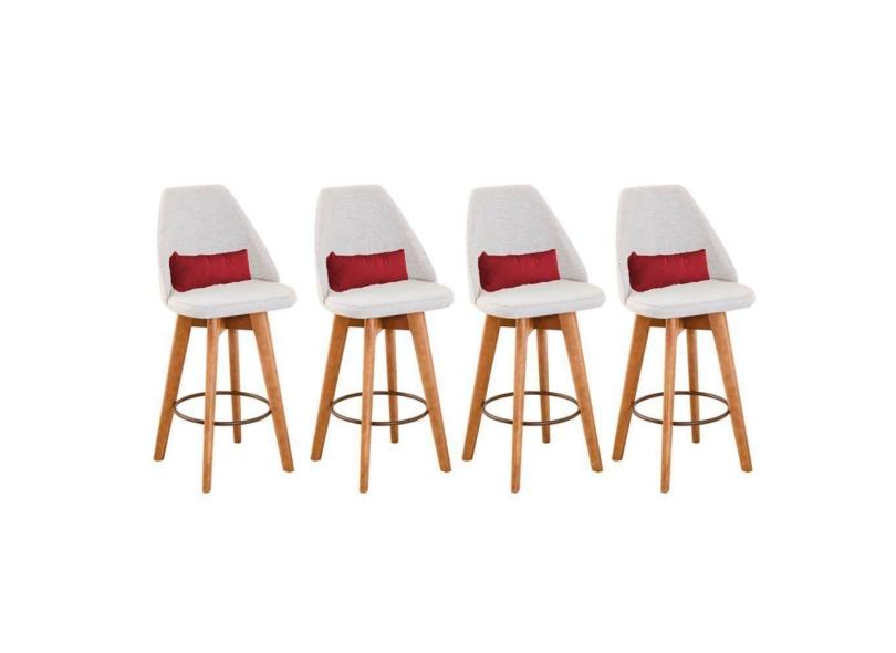 Kit 04 Banquetas Bege Claro E Almofada Corino Vermelho