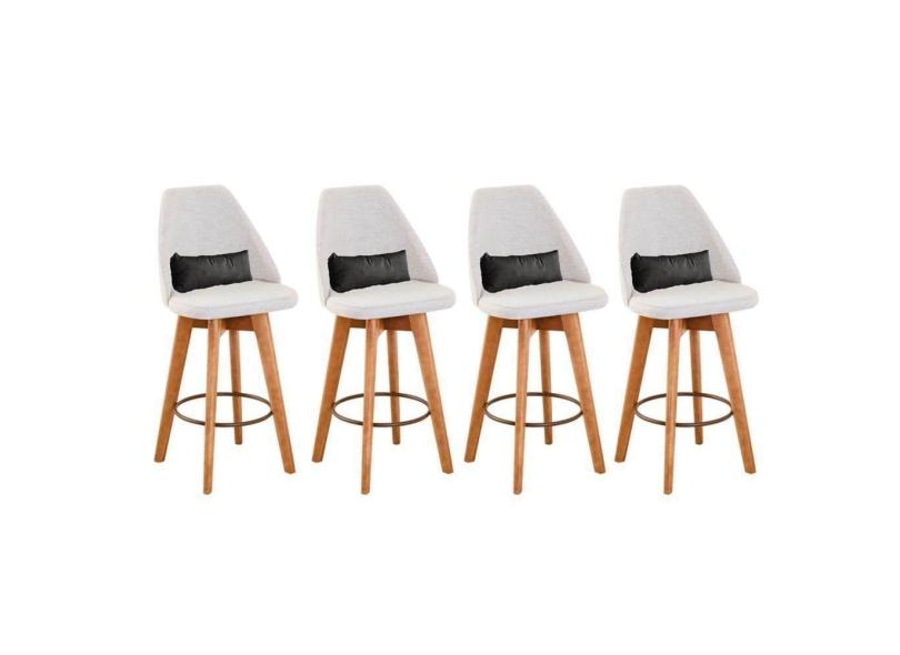 Kit 04 Banquetas Linho Bege E Almofada Suede Cinza