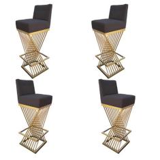 Kit 04 Banquetas Luma Base de Ferro Sued Grafite - D'Classe Decor