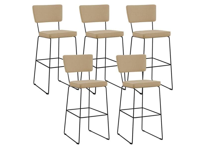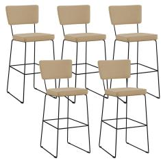 Kit 05 Banquetas Alta Base Linho Bege Escuro