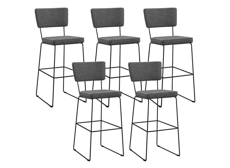Kit 05 Banquetas Alta Linho Cinza Escuro