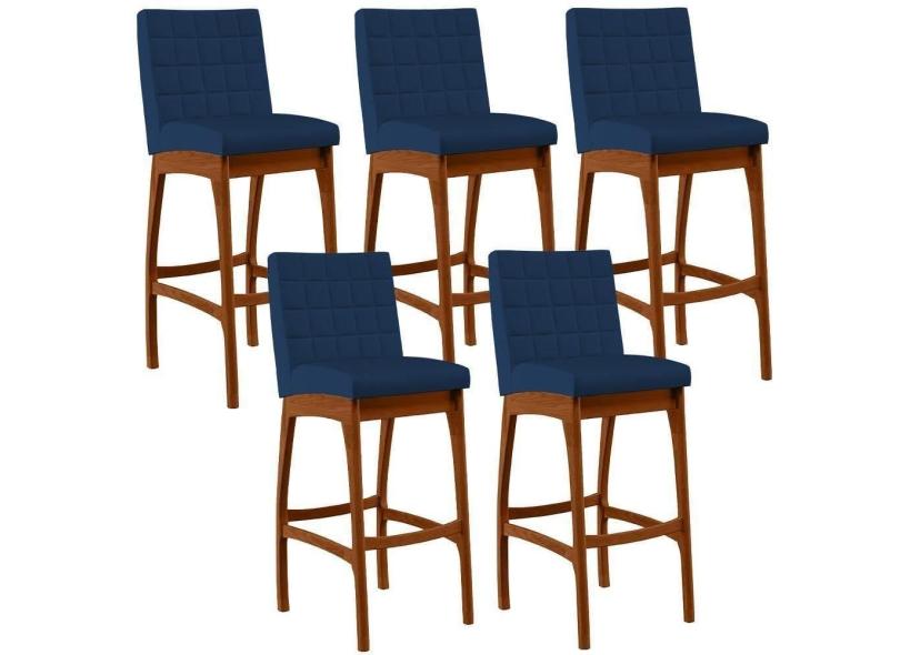 Kit 05 Banquetas Altas Mila Suede Azul Marinho