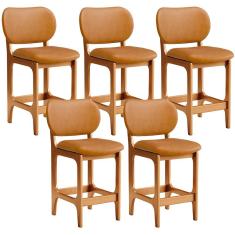 Kit 05 Banquetas Baixa Bar Cozinha E Sala De Jantar Fixa Betta Imbuia