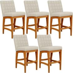 Kit 05 Banquetas Baixa Cozinha Bancada L02 Marrom