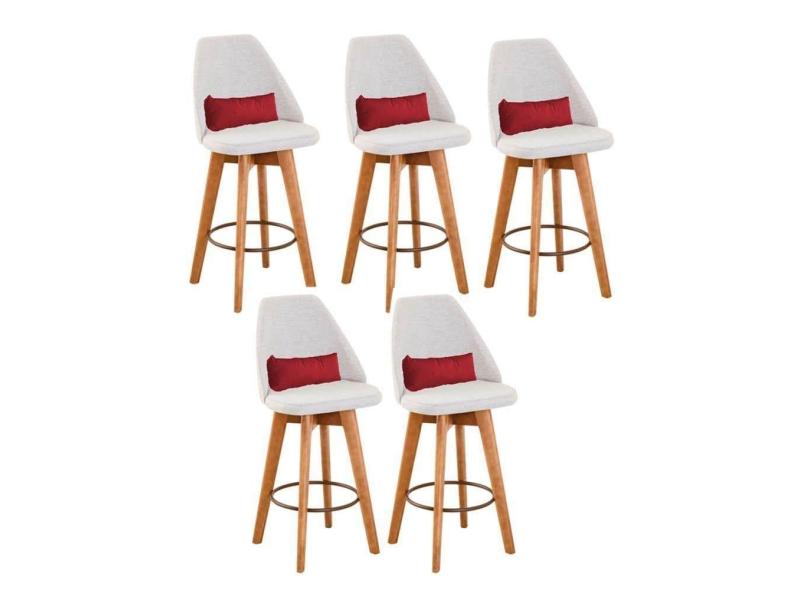 Kit 05 Banquetas Bege Claro E Almofada Corino Vermelho
