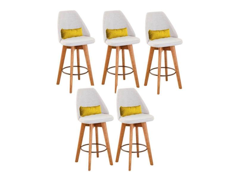 Kit 05 Banquetas Bege Claro E Almofada Suede Amarelo