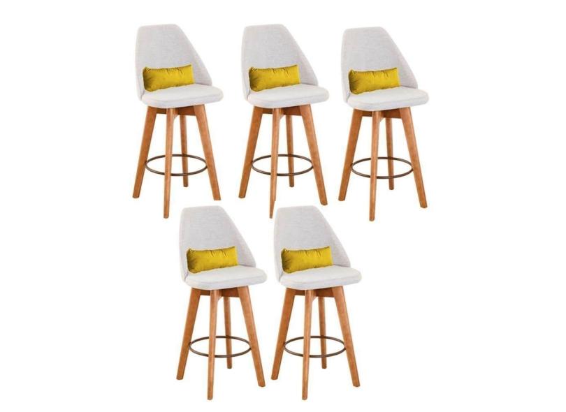 Kit 05 Banquetas Linho Bege E Almofada Amarelo