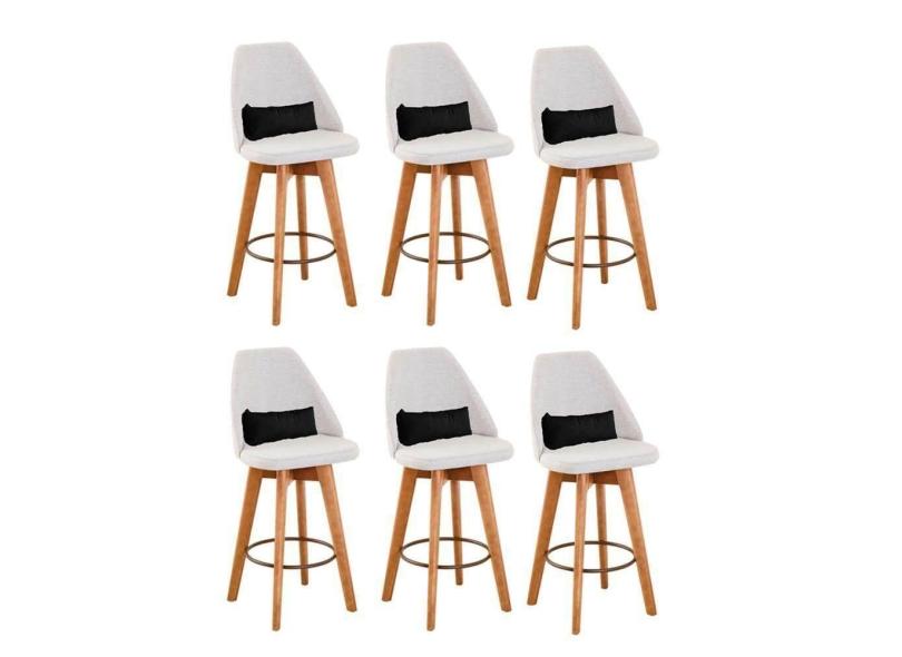 Kit 06 Banquetas Bege Claro E Almofada Corino Preto