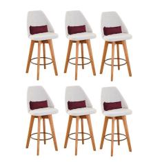 Kit 06 Banquetas Bege Claro E Almofada Sintético Bordô