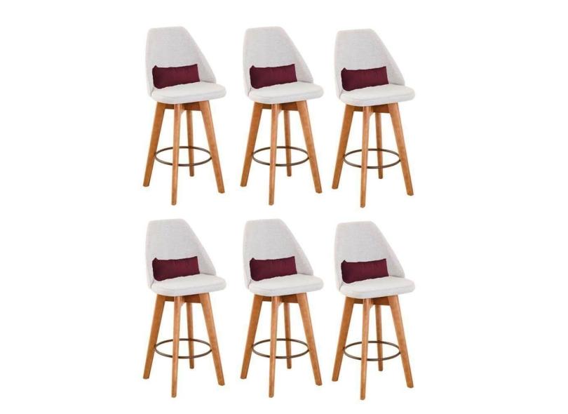 Kit 06 Banquetas Linho Bege E Almofada Bordô