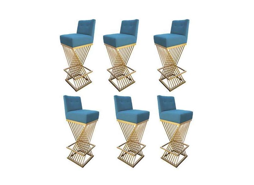 O menor preço encontrado no Brasil para Kit 06 Banquetas Luma Base de Ferro Sued Azul Tiffany - D'Classe Decor atualmente é R$ 3.236,31.